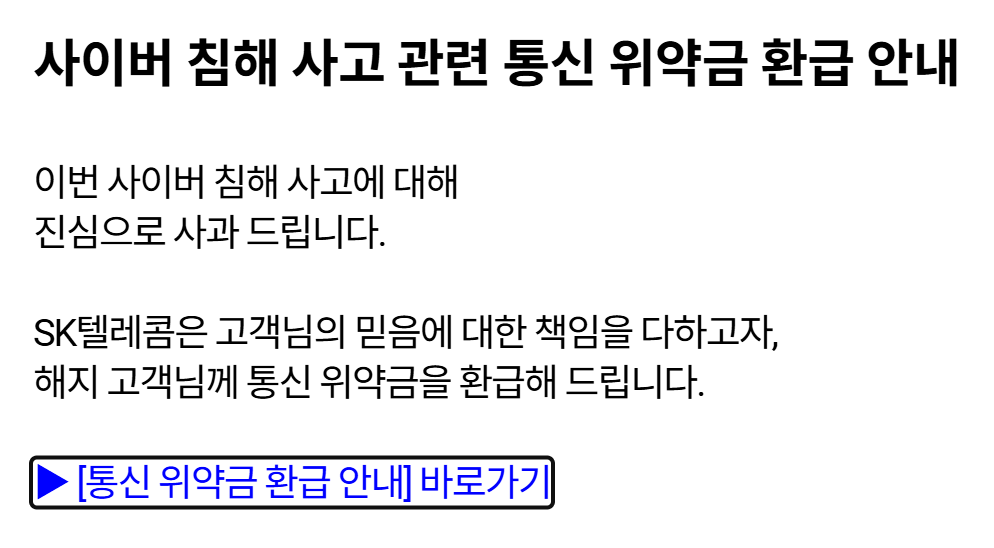 사이버 침해 사고 통신 위약금 환급 안내 드립니다.